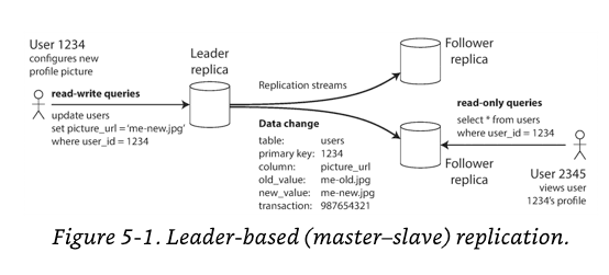 replication logorchange stream. - Read requests cna be queried from either the leader or any of the followers.