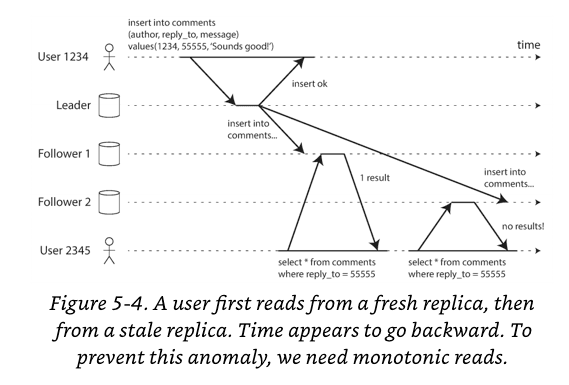 - client can remember the timestamp of its most recent write, so if replica is behind the timestamp, read can be handled by other replica.