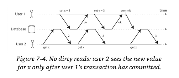 - If a transaction needs to update several objects, a dirty read means that another transaction may see some of the updates but not others. Seeing the database in a partially updated state is confusing to users and may cause other transactions to take incorrect decisions.